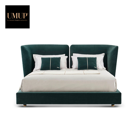 Premium Modern lüks çift yatak takımı King-Size İtalyan kumaş kadife döşemeli karyola iskeleti ahşap çerçeve yatak odası mobilyası